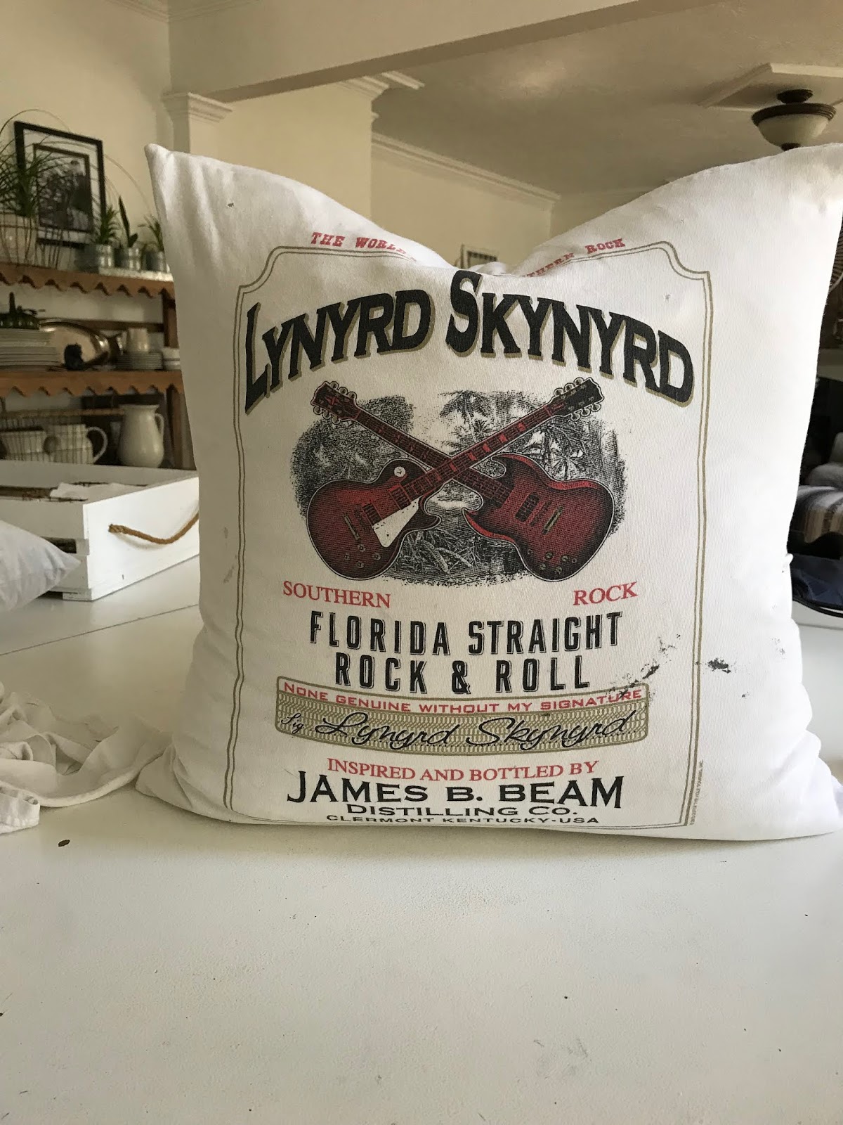 So for these throw pillows, I first figured out how to make them on the white Lynyrd Skynyrd T-shirt So with that pillow being my practice one, I then tweaked a few things to show you this how-to with the black Black Sabbath T-shirt.