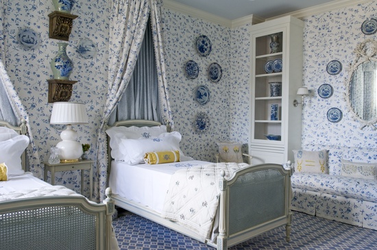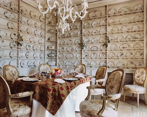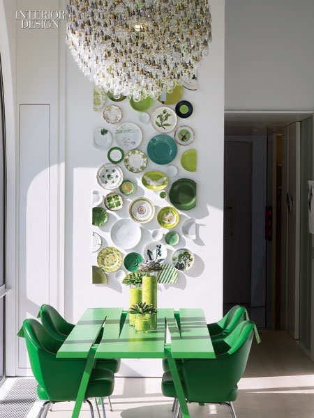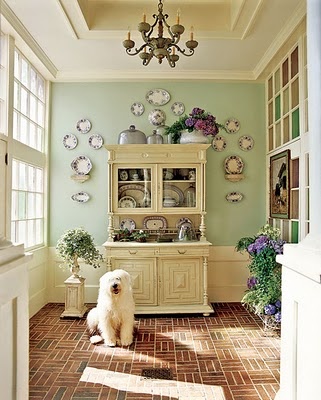 People have always hung plates on walls. I remember my mother using plate hangers to show off some of her prettiest antiques. Plate walls became very popular a few years ago and even though they have their critics, people still seem to like them. It is a way to display your plate collections that can be fun and whimsical or very elegant. So my design advice is....if you like it go for it. Just make it a well thought out project and you will enjoy it for years to come. Here are some images to give you design ideas.