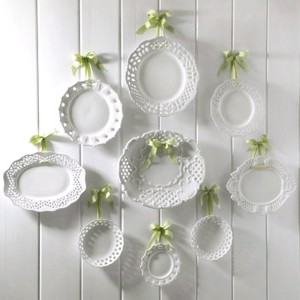 Pretty ribbons are an alternative to plate hangers for a feminine room.