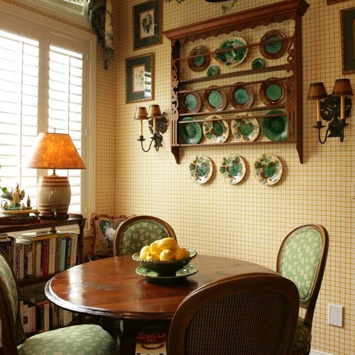 Remember a plate wall can be papered as well. Just make sure the look is coordinated well.